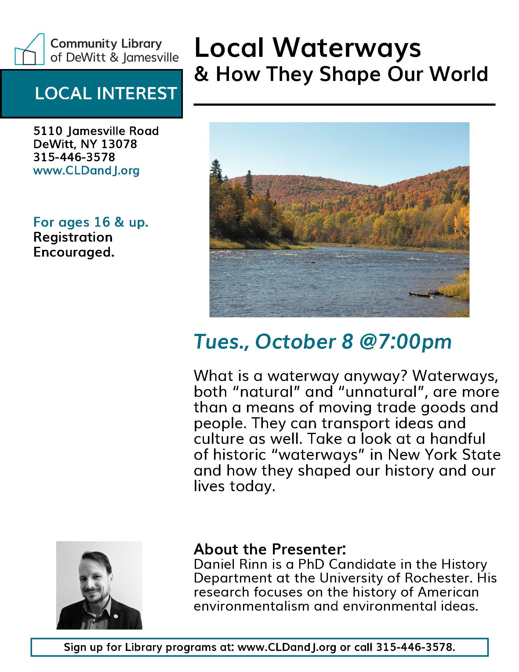 Local history and public engagement also define my collaboration with the Museum Association of New York (MANY) on the Smithsonian Water/Ways exhibit. In December of 2018, I gave a talk about historical methodology to the museum professionals tasked with curating and managing the exhibit. The presentation encouraged curators to reflect on how and why the exhibit distinguishes between ‘natural’ and ‘unnatural’ waterways. I am also providing public lectures about New York’s environmental history in each of the cities hosting Water/Ways. Toward this end, I have composed an engaging, multi-media talk that invites audiences to think critically about the various modes in which water shapes, and is shaped by, human identity, ideas, and culture.